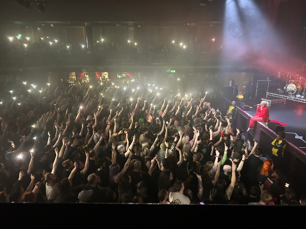 The security staff are well trained which was noticeable from the efficiency they set up the barriers and flags outside the venue. We have been to Rock City too many times to mention prior to diagnosis. It is our favourite venue for the stage arrangement, but also the audience. What a good atmosphere! Accessibility / Priority entrance are to the right of the entrance, identified by a large flag. We got in the rather large queue for access issues with 15 minutes prior to entrance time, and sure enough 5 minutes later we were escorted into the venue, given a brief introduction to the facilities and told to choose weather to go onto the dance floor or continue up the flight of stairs to the balcony where a bar stool would be provided. What a view….